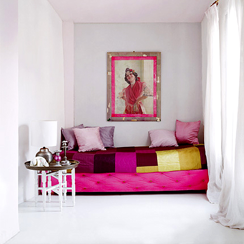 I am not very fond of using too much color  in interiors but I have to admit that these interiors look fabulous. I especially love the image above: the colorful sofa looks stunning with the white floor and walls.