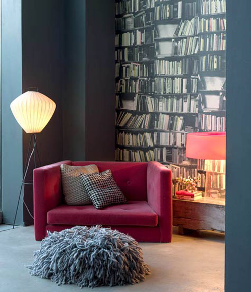 The book case wallpaper can be bought at Abigail’s shop Atelier Abigail.