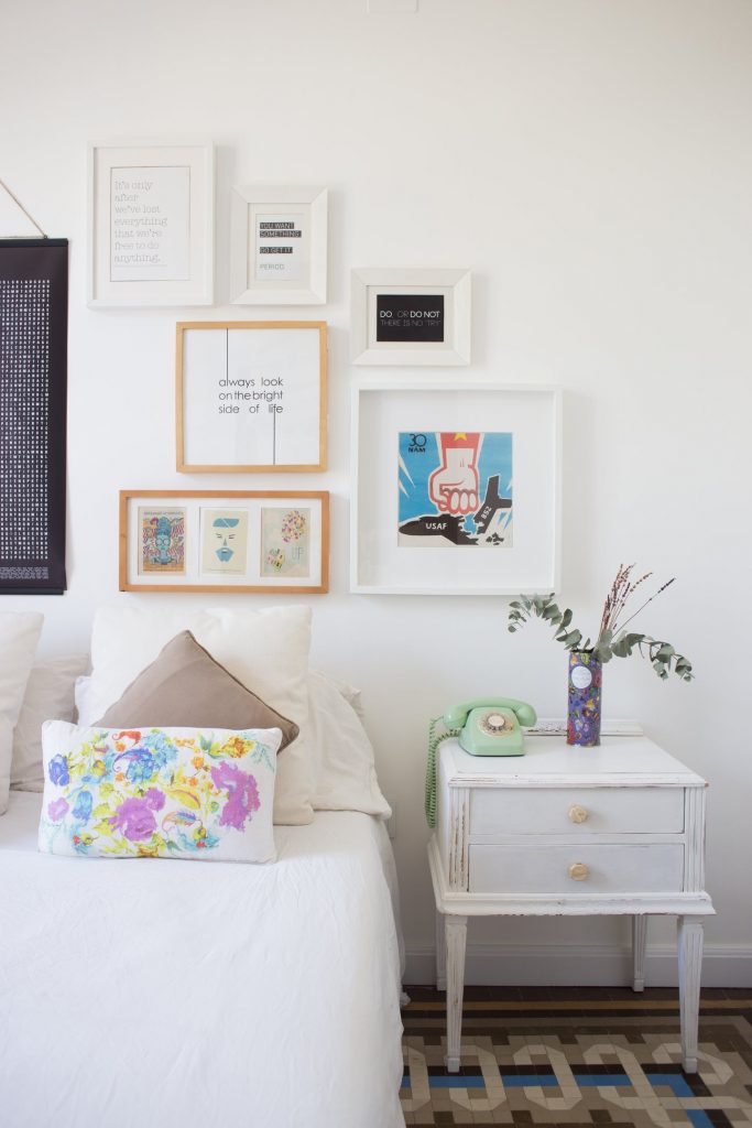 I adore the different tiled floors, the gallery walls, the attention to detail with each specially chosen light fixture, and the little pops of color in each room (from the green telephone, to all the fresh flowers).