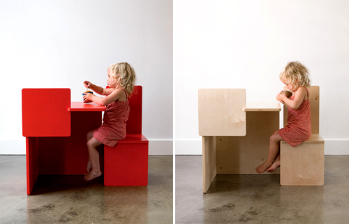 The Child Child Chair is a combination of two child chairs and a small table. To sit, play and have a nice child-to-child conversation on their own level. The chair combination, designed by Maartje Steenkamp from The Netherlands, is available in various colors. Click here to find a dealer in The Netherlands. In the US, the chair is available from Modernchild.