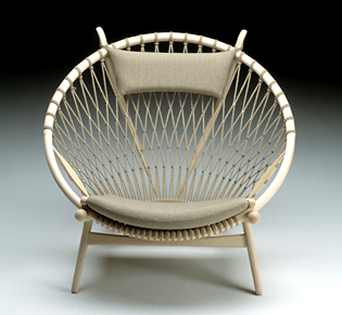 The round shape of the chair reminded me of another beautiful chair: the Circle Chair (image above) by Danish designer Hans J. Wegner. The design is a laminated ring with stretched, wide-meshed net. To manufacture this chair it was necessary for master of crafts Søren Holst Pedersen and master journeyman Henry Fisker to develop a special machine for manufacturing it in wood – which Wegner himself actually did not think was even possible. The Circle Chair was Wegner and PP Møbler’s contribution to the SE Exhibition in 1986. And, as usual, the prototype was not completed before the very last moment – the morning of the show to be exact. Visit/contact PP Møbler for more information about this beautiful chair.