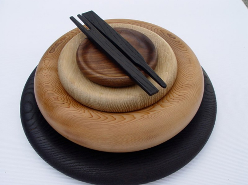 His individually hand made wooden bowls, plates and kitchen utensils are suitable for both functional and ornamental use. The work is made in Cornwall, UK, from locally sourced sustainable timber: oak, beech, cherry and ash. Using traditional and digital techniques the work focuses on elemental forms with natural surface finishes and a contemporary identity. The bowls in the top image are made from burnt oak, round cedar, oak and walnut. The kitchen and garden tongs (above) are from burnt oak, beech and cedar. Visit Gary’s website for more information and to see more of this work.