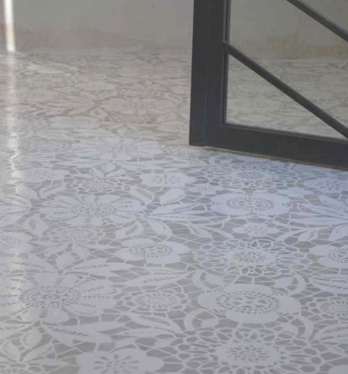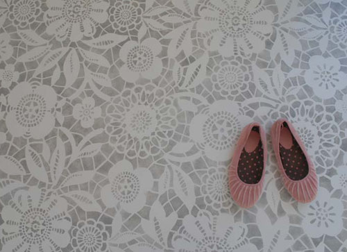 I love this floor at Maryam’s Peacock Pavilions . The stencil has been used for the floor in her daughter Skyalar’s room, hence the name Skylar’s lace. The stencil is for sale at Royal Design Studio. Isn’t that floor stunning?!