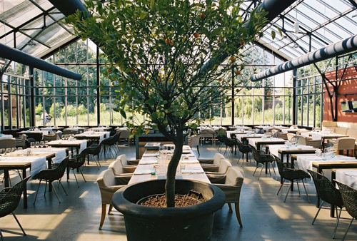 One of the finest restaurants in Amsterdam is ‘De Kas’. De Kas is a large restaurant and nursery, located in a former greenhouse on the outskirts of Amsterdam. Their menu is about simplicity and flavor, using only the best organic ingredients. The restaurant grows most of their own vegetables and herbs in their organic garden, which is in Ilpendam (a small village north of Amsterdam not far from where I live). Dutch designer Piet Boon is responsible for the interior of the restaurant.