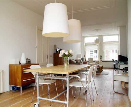 When moving in together Ivar and I had a lot of furniture that we did not need anymore. We have kept them in storage for months but have now decided to sell them. Most of our furniture have been sold this weekend through Marktplaats (= Dutch Craig’s list). I had never expected that things would sell that fast (within 24 hours!). We are also selling this unique table featured in the image above. When posting this image on the style files last year many of you commented how much you liked the table. So for those loving the table and living in The Netherlands (the table can not be shipped) I would like to give you heads up that this table is for sale (starting price is 300 euro). You can send me an email (danielledelange at gmail) if you’re interested. The four white chairs (Danish design) are also for sale by the way.