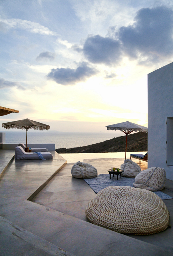 Located on the Greek island of Syros, this beautiful summer home is the vacation home of a family of four and their guests. The slope of the land was respected in the design and construction of the building, making the most of the views and the countryside. The views of the Aegean Sea are one of the main attractions of the house! Greek architects Block722 opted for stone walls which are typical for the region. This way the building is integrated with the environment. Inside, the aesthetics of the Greek islands is present throughout the house with white as the main color and fabrics and natural materials being used for furniture pieces and accessories. The outdoor spaces include two open courtyards shielded from the sun and an open central court suitable for sunbathing and children’s plays.