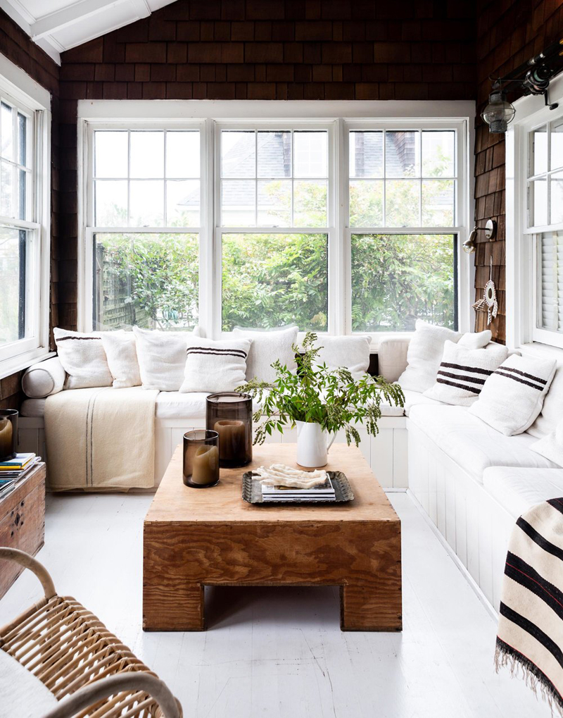 How are you lovely people doing today? It is a cold day here in The Netherlands. What is it like in your part of the world? Today’s post features a tiny house on Fire Island, USA. This lovely cottage is place where Alex Bates and her family escapes from their hectic city lives in New York. Alex is a former creative director of West Elm and now has her own creative agency Flint & Kent. She also is the co-founder of Bloomist, a company that believes in using natural materials and environmentally friendly, sustainable production to create nature inspired products for the home. You should check out the Bloomist website and the shop is filled with gorgeous items! Ok, back to the cottage now. It was built in 1911 and when the family moved in, they did very little to it as they wanted to keep it authentic to the builder and the style. You can read more about this cozy house on Maryn.