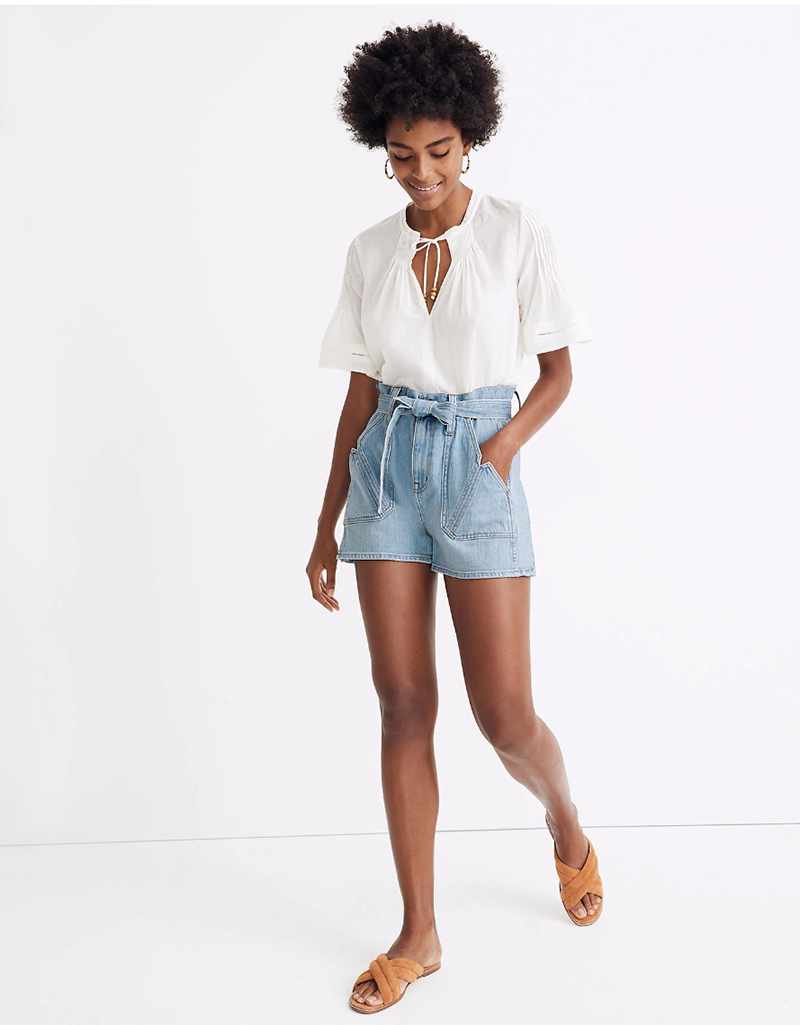 Above: Madewell x Warm Tie High-Rise Denim Shorts | Madewell x Warm Pintuck Tie-Neck Top
