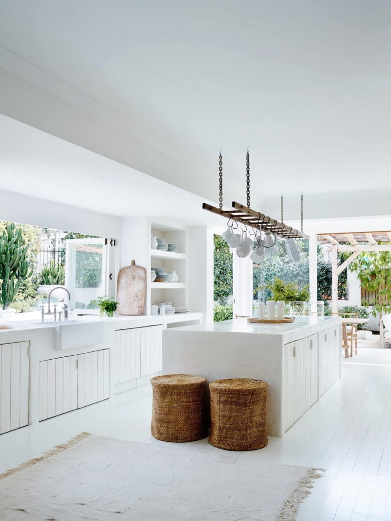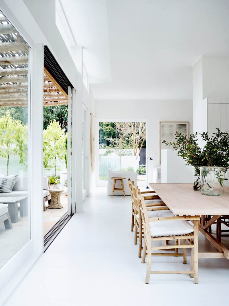 This beautiful secluded home in Sydney is a holiday oasis within the city. The white base combined with materials such as rustic wood and terracotta tiles gives this home a Mediterranean vibe. This is no coincidence as Megan Burns from CM Studio, the multidisciplinary design studio that is responsible for the redesign of the house, looked at Mediterranean hotels and summer houses for inspiration on finishes. The use of moulded plaster can be seen from anywhere from Morocco, Ibiza, Mykonos and Puglia.