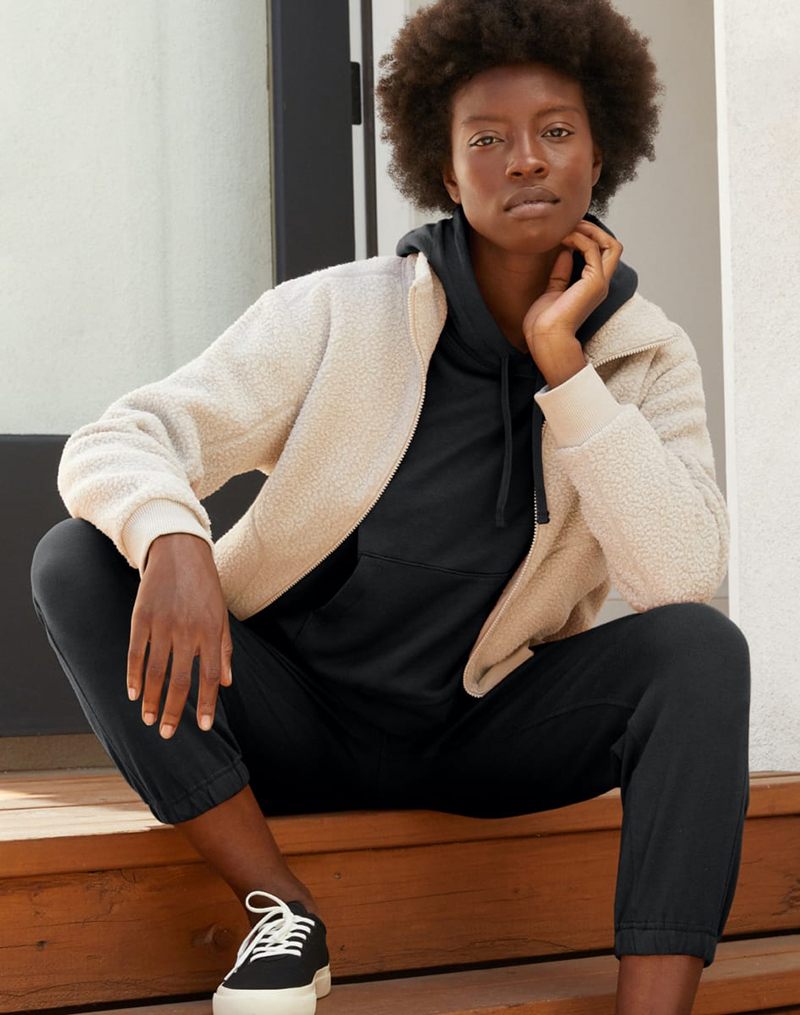 Above: the reNew fleece raglan sweatshirt by Everlane, available in 7 colors.