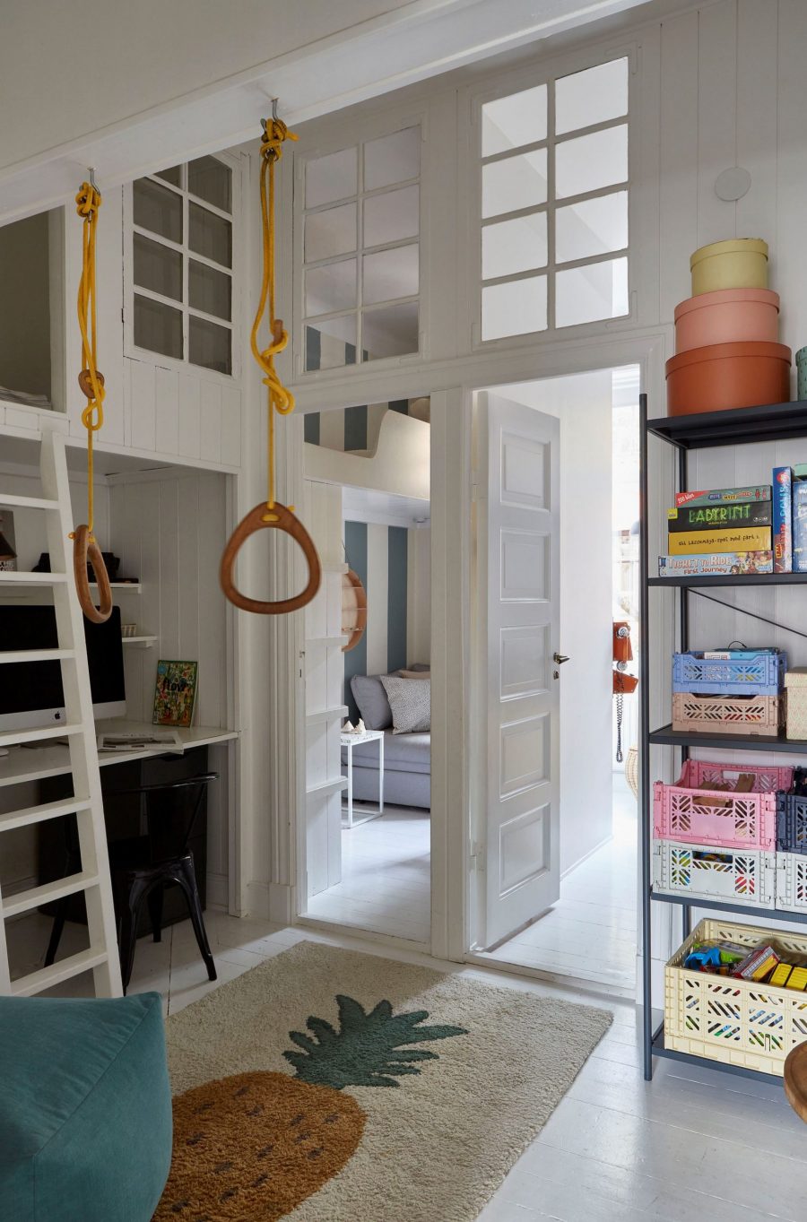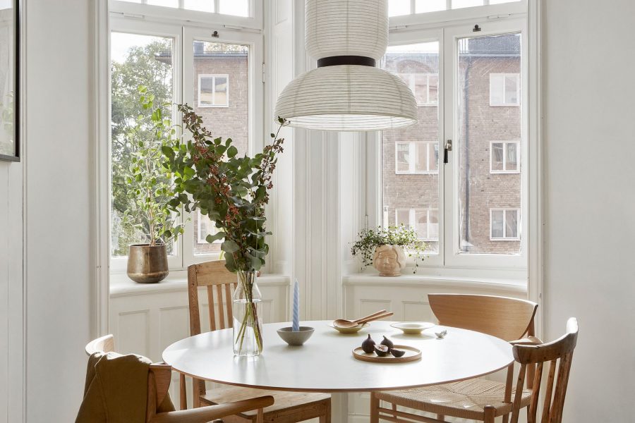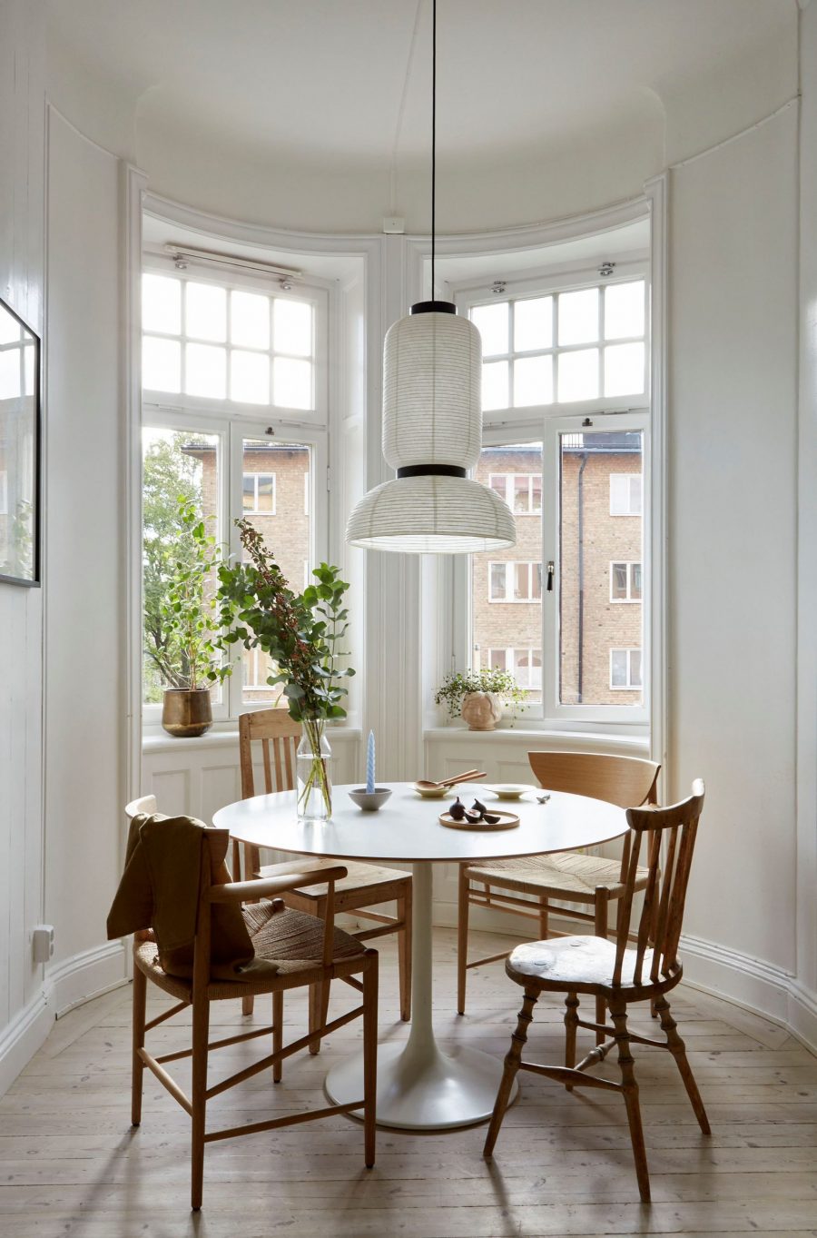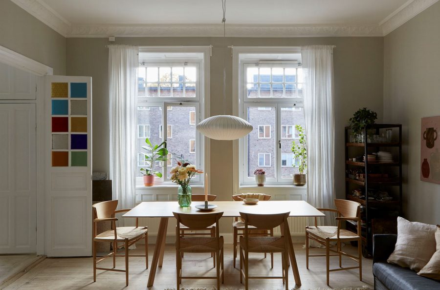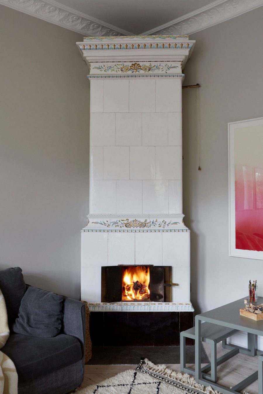 There is a lot that I like about this beautiful apartment in Sweden: those stunning old fire places, the high windows and ceilings (creating lots of light), the wooden floor and the combination of traditional mixed with modern furniture pieces and accessories. The result is a warm and cosy home!