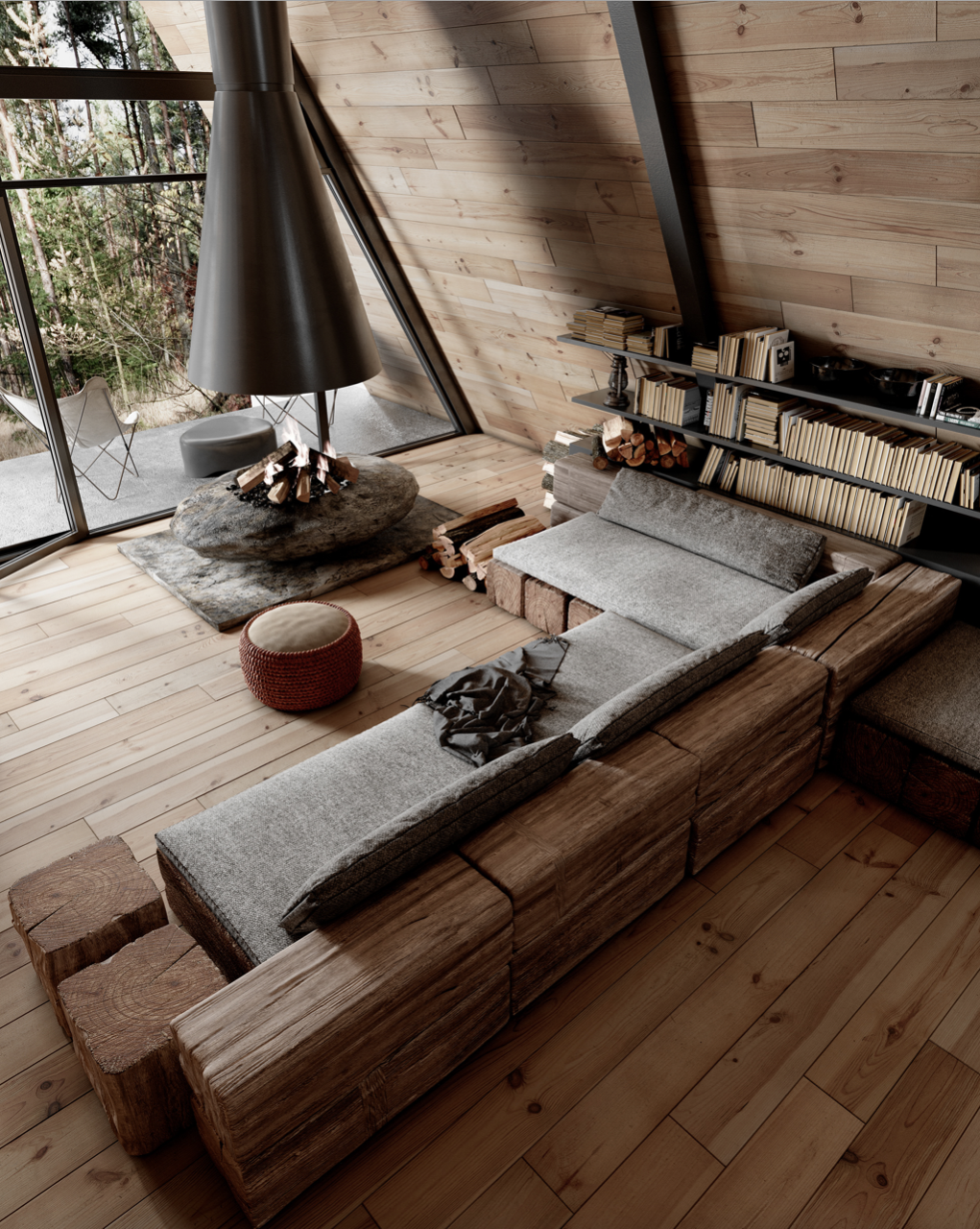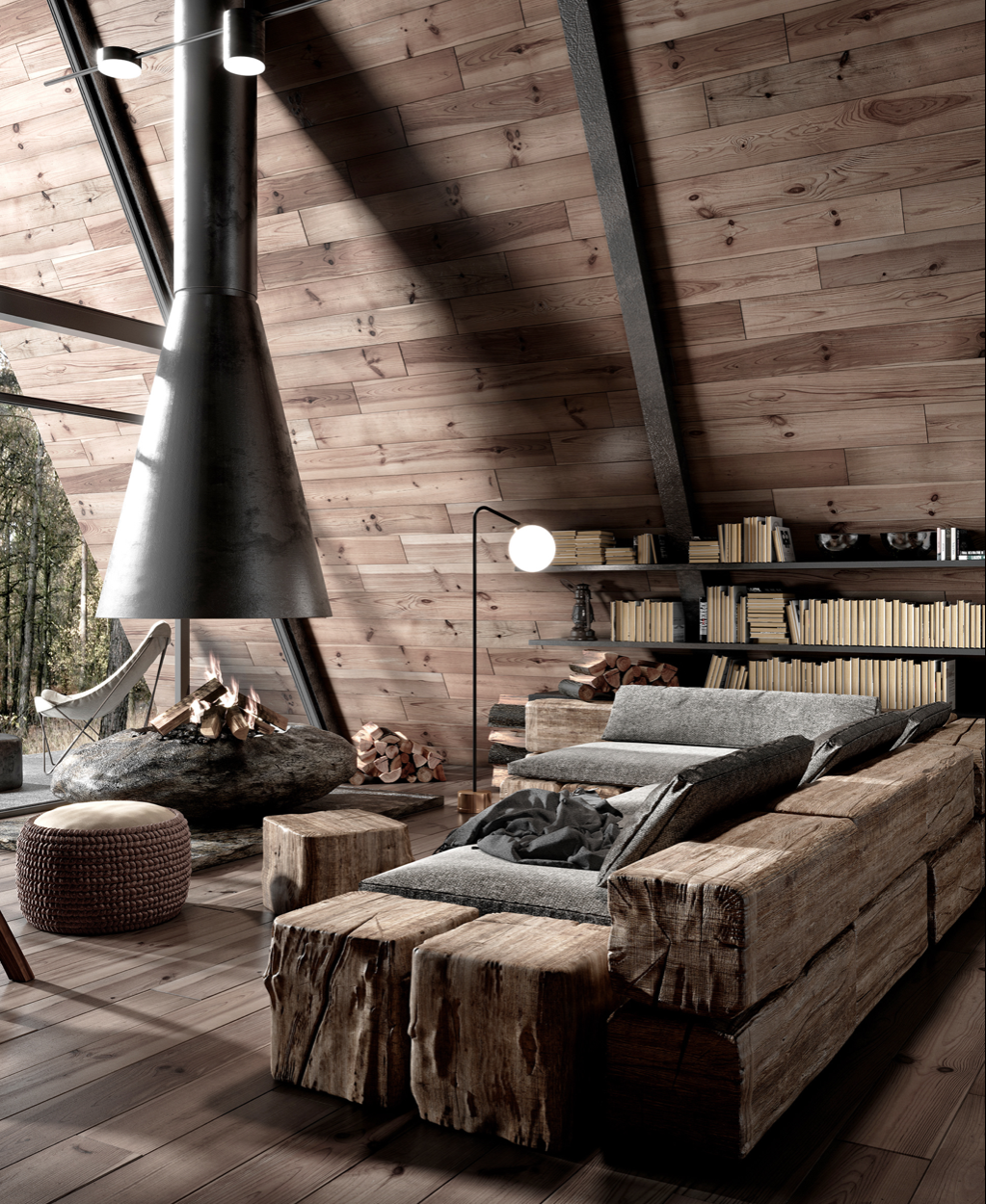 Interior designer Yana Prydalna has designed Quiet Space House, a modern A-frame cabin located in the middle of the Lake Tahoe forest, California. The beautiful cabin serves as a weekend retreat in the woods for two people. The main building material has been wood, creating a feeling of nature inside the cabin. And the lovely porch is perfect for enjoy the starry sky on a summer evening.