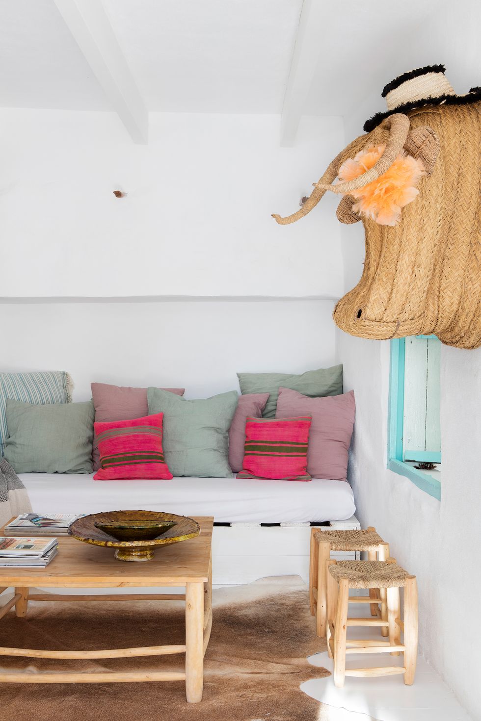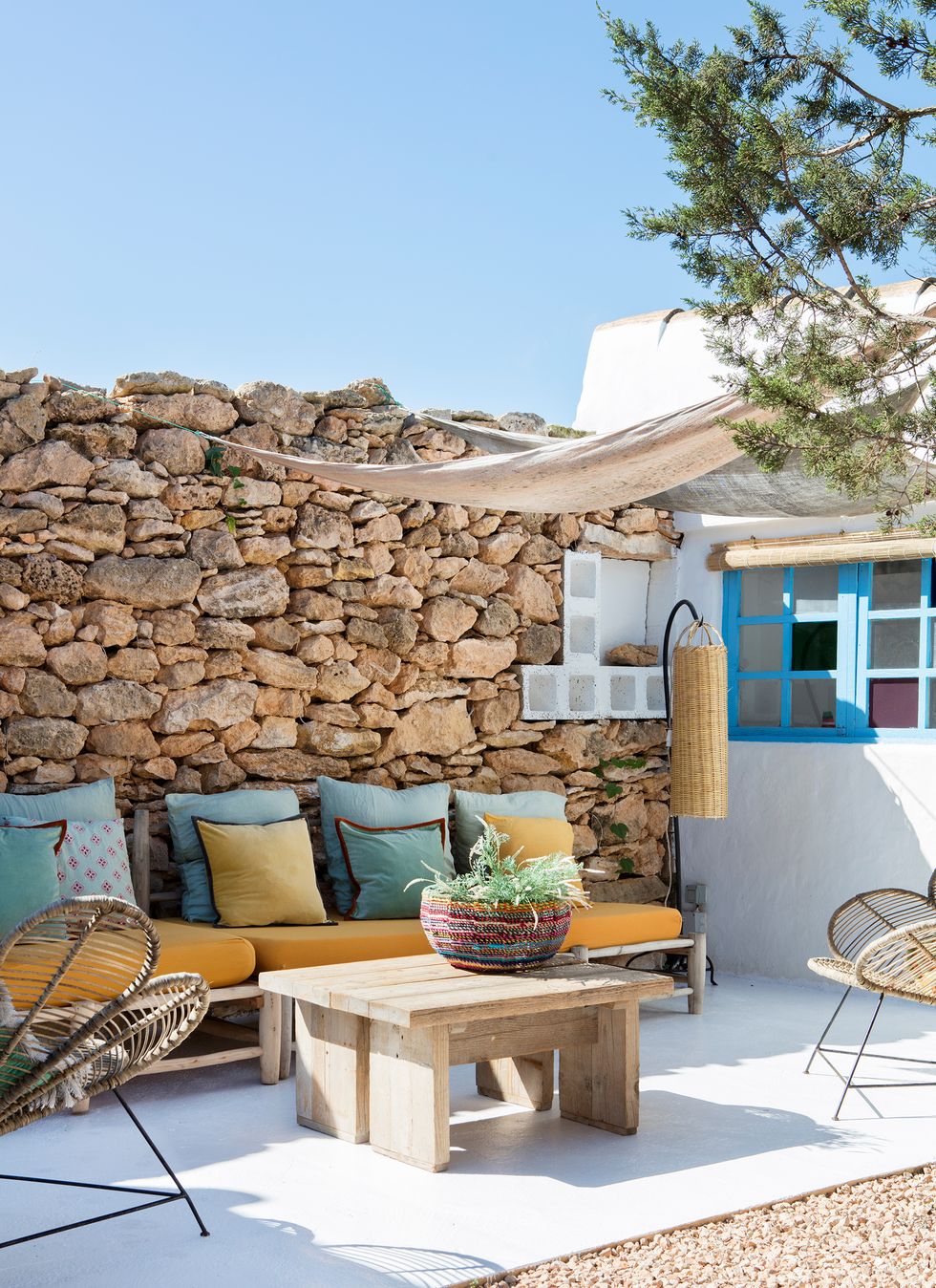 This renovated farmhouse on the Spanis island of Formentera is the ultimate summer home. The architecture of the building and the use of natural materials and colors give this family home that rustic Mediterranean island vibe. The shady porch is the perfect spot for an al fresco meal on a lazy summer day!