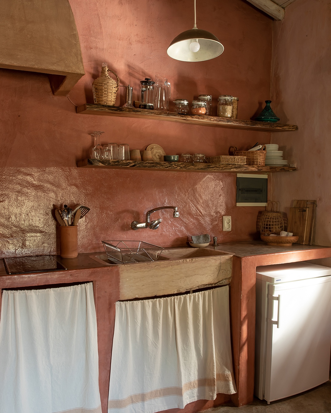 Muxima is a beautiful forest eco-retreat that is inspired by the spirit of the African continent – Muxima is Kimbundu, an Angolan dialect, for ‘heart’. The resort is situated on a 28-hectare strand of cork and eucalyptus forest. There are a number of separate houses built in the traditional way but decorated inside with the vibrant shapes and colours of Africa. Owners Paula and Jelle share their great love for wild nature and good food with their guests. They want to keep everything as pure as possible and keep a strong connection with their surroundings. The houses are beautifully decorated with items collected from many travels and each room has its own, unique style. In the shared living room one can enjoy a book from the library by the fireplace with one of the Portuguese, organic natural wines from a carefully selected wine list.