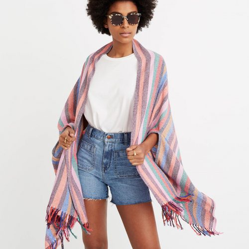 I absolutely love Madewell’s spring collection with all the rainbows and stripes. In my closet are the rainbow stripe cape scarf (featured above), the rainbow butterfly top and that beautiful tote with rainbow striped strap. But there are more items on my wishlist! Above: rainbow stripe cape scarf.