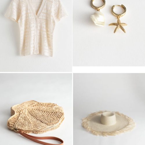 I love white and beige for summer, especially combined with brown leather sandals and straw accessories. Above and below some affordable summer pieces from &Other Stories. Above: tie blouse & white flare jeans.