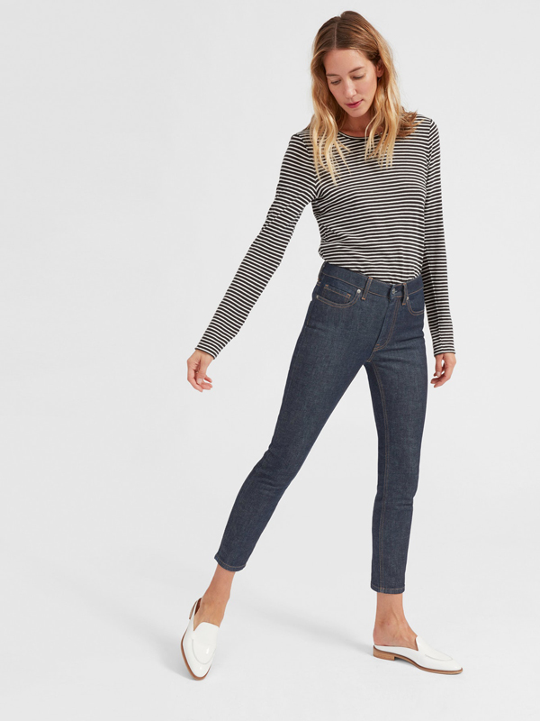 My go-to shop for basic items is Everlane. Their style is a cross between Scandinavian simplicity and French chic, resulting in basic elegant and casual fashion. I am thrilled that Everlane. now has a denim line with jeans made of premium Japanese denim with just a touch of stretch. I have just ordered their high rise jean. This type of