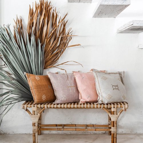 To create a bohemian style interior you can use furniture pieces made natural material such as rattan or cane. Yak and Yeti Trader has some beautiful pieces in their collection. Their designs are inspired by nature and are ethically made by skilled artisans. You can find their collection here. The cushions in the images are made of cactus silk and
