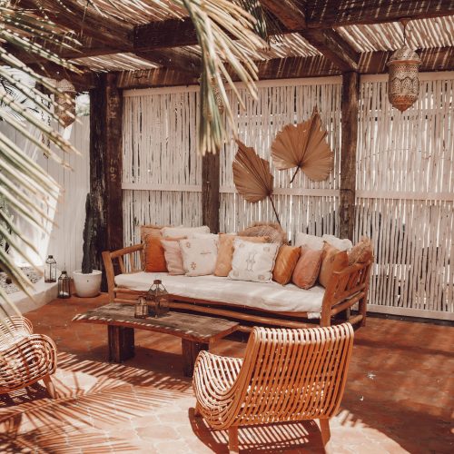 It is still cold outside but the first signs of Spring are here which make me think about working in the garden and creating a cosy outdoor area. Looking for inspiration I found this beautiful patio that is part of the Spell boutique in Byron Bay. If you would like to create a similar look: Le Souk now has some