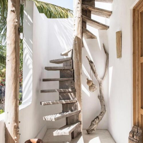 Casa Impala is an exclusively private retreat on beautiful Holbox island, Mexico. This unique island hideaway is ideally located in a luxuriant palm grove, just a few steps from the beach and a few minutes from the town center of the island. The two level property has a loft style living space and a roof top sun deck and bungalow