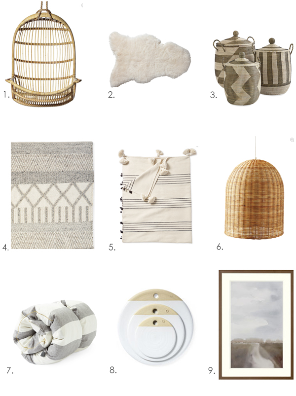 It is Cyber Week! With code THANKYOU you receive 20% off your entire order from Serene & Lily (valid until 28th November). Here are some of my favorite items from their collection. Happy shopping! 1. rattan hanging chair | 2. sheepskin rug | 3. storage baskets | 4. wool rug | 5. pinstripe throw | 6. rattan pendant light |
