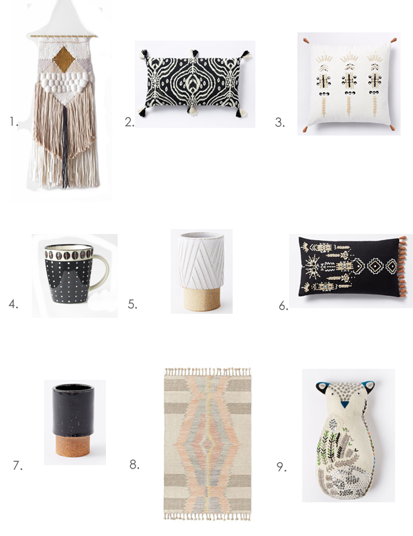 West Elm also has a great Cyber Week deal: with code SAVENOW you receive a discount of 15% to 30% discount. Above are some of my favorite items from their collection. 1. handwoven wall hanging | 2. handcrafted beaded ikat pillow cover | 3. hand made Egyptian jewel pillow cover | 4. tableware handmade by South African artists | 5.